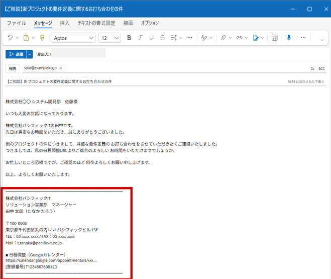3章で触れた「Win + V」のようなショートカット機能を組み合わせれば、署名は単なる連絡先から「作業を加速させるツール」へと変わります。