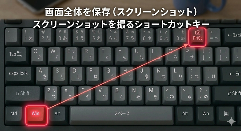 「PrintScreenキーがどこにあるか分からない!」そんな悩みも、このショートカット一つで解決します。今のWindowsにおいて、最も推奨されるpc スクリーンショット 取り方がこれです。