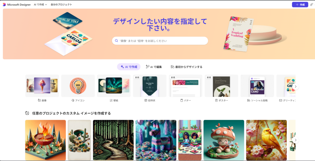 「画像は用意できたけど、どう配置すればおしゃれに見えるかわからない」という方に最適なのが、Microsoft Designerです。