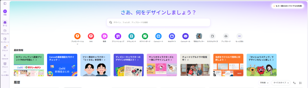 1. 公式サイトからデザインを作成 まずはCanva公式サイトへアクセスし、ログイン(または無料登録)します。ホーム画面の「デザインを作成」から、作りたいサイズ(例:ブログアイキャッチ)を選びます。