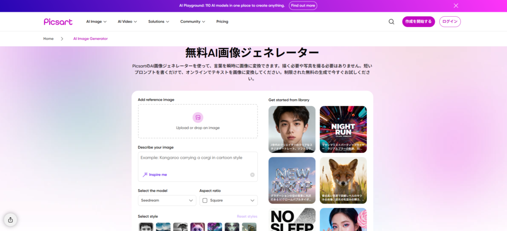 「PCを開く時間がないけど、今すぐSNS用の画像を作りたい」という多忙な方に最適なのがPicsartです。世界中で数億人が利用する定番ツールで、AI生成から高度な写真加工、文字入れまでがスマホ1つで完結します。