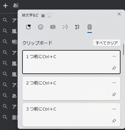 Win + V | さっきコピーした情報をもう一度使いたい時に | |