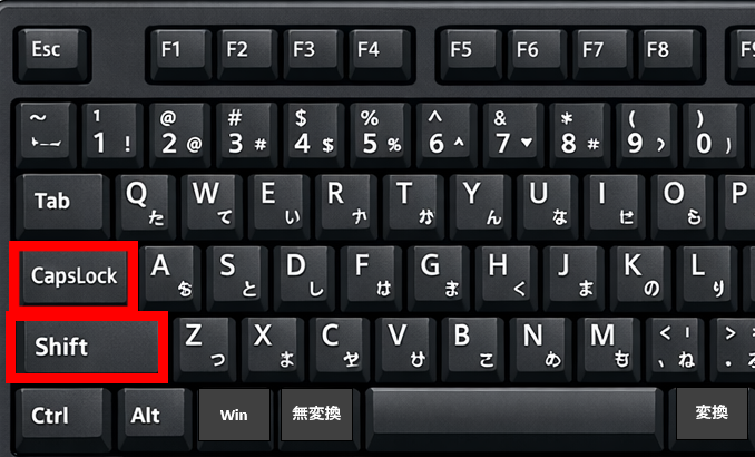 - Windowsの場合: Shift キーを押しながら CapsLock キーを押す