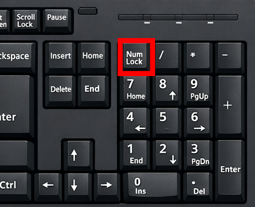 - ノートPCの場合: Fn キーを押しながら NumLock(または NumLk)キーを押す