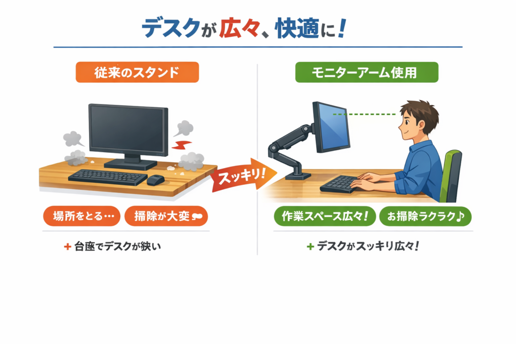 モニターを「浮かせる」だけで、以下の変化があなたを待っています。