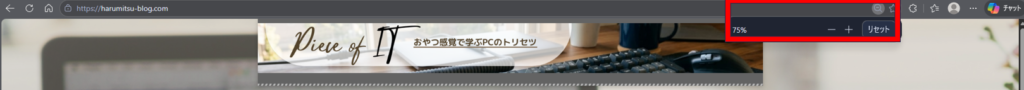 - このアイコンをクリックすると、現在の倍率がひと目で分かり、ワンクリックで「リセット(100%)」に戻すことも可能です。