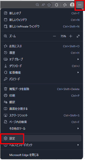 1.ブラウザ右上の「︙(三点リーダー)」をクリック。